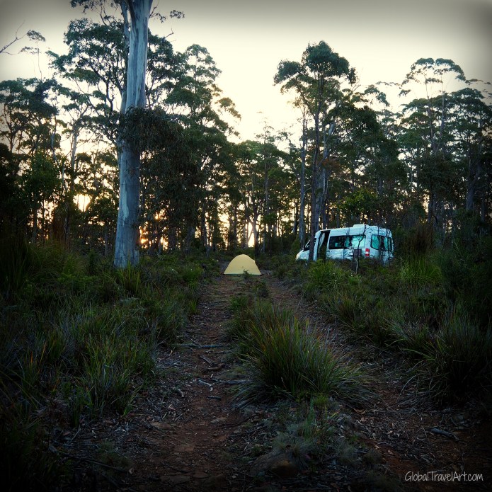 Trotzdem wusste ich nicht, was mich dort erwarten würde. Umso entzückter war ich, als ich eine derart landschaftliche Vielfallt vorfand. Wie ich es bereits eingangs erwähnt habe, gibt es in Tasmanien eine ganze Menge kilometerlanger weisser Sandstrände – viele davon sind menschleer. Tasmanien kann aber auch mit ein paar beachtlichen Berge aufwarten. Der tasmanische Westen ist mit dichtem undurchdringbaren Buschwerk bewachsen. Aber zum Glück gibt es auch viele ’normale‘ Eukalyptuswälder. In einem solchen erlebte ich meine schönste Waldweihnachten.